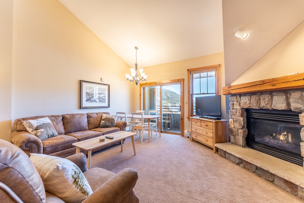 POR FAVOR, TEN EN CUENTA QUE: Complejo de piscinas cerrado del 27 de abril a mediados de mayo de 2026 No se permite el check-in anticipado ni el check-out después de la hora establecida. Relájate en este espacio tranquilo y elegante. Nuestro cálido y acogedor condominio está ubicado en una zona tranquila pero conveniente muy cerca de los ascensores y la ciudad. Acurrúcate hasta la chimenea de gas, relájate en la terraza cubierta y las sillas Adirondak con café o un coctel. Utiliza las batas proporcionadas para dar un paseo fácil hasta la piscina y las bañeras de hidromasaje después de un día de esquí o senderismo. El lujo de montaña se encuentra a solo un clic de distancia.