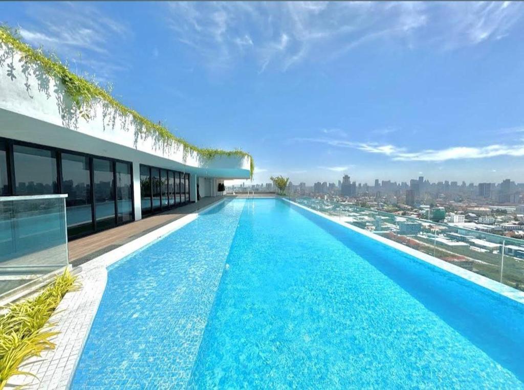 Experience Phnom Penh: Central 1BR Apartment with Breathtaking Sunset Views, City Landscape, swimming pool, gym and co working space. Welcome to high-rise on the 20th floor in. Our stylish 1-bedroom apartment, spanning 32 square meters, is a perfect blend of comfort and elegance. Designed for both leisure and business travelers, this space offers a unique vantage point to enjoy the captivating cityscape and spectacular sunsets. Internet speed 20mbps and local 70mbps (youtube and social media)