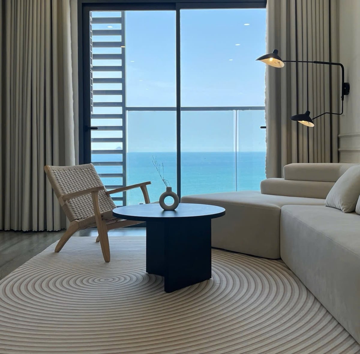 Acogedor y moderno apartamento de 1 dormitorio en el piso 27. ¡Siéntete como en casa al pasar una noche aquí! Cada detalle del apartamento está decorado con espíritu artístico. Con un estilo ligero y sutil, el apartamento 2716 en la planta 27 te ofrecerá un espacio de descanso ideal. Ubicado en el complejo Muong Thanh Vien Trieu, cerca de la romántica playa de Hon Chong, disfrutarás de un baño en el mar a solo un minuto a pie.