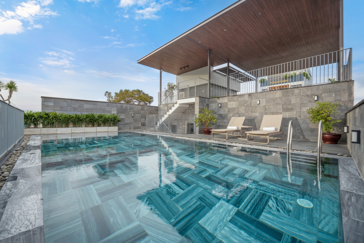 Te damos la bienvenida a nuestra nueva villa moderna, diseñada para la relajación y la diversión. Con 6 amplios dormitorios, una piscina infinita en la azotea, baño turco, ascensor e interiores modernos, este alojamiento ofrece todo lo que necesitas para una estancia inolvidable en Da Nang.