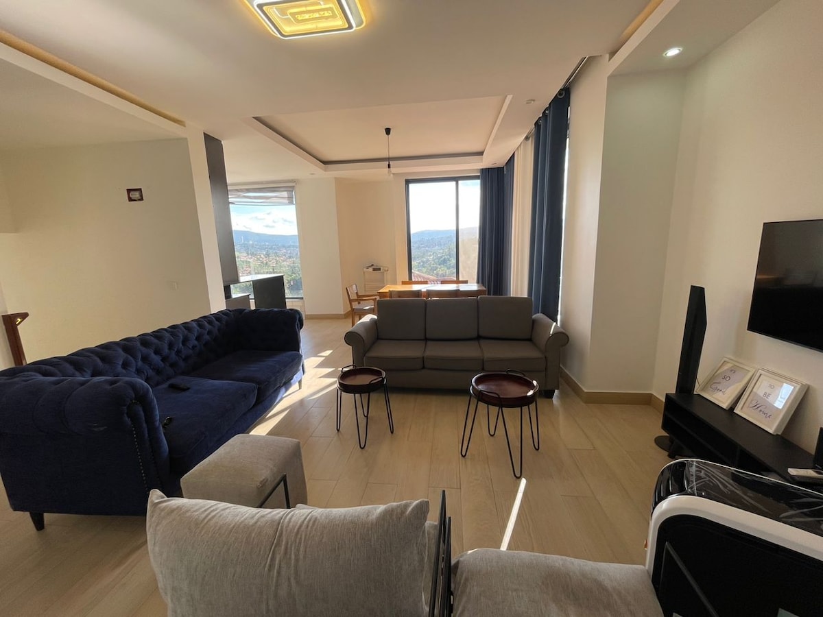 Descubre la escapada de tus sueños en un nuevo y tranquilo alojamiento de 3 dormitorios, en la principal zona residencial de Kigali (Gacuriro),Umucyo Estate, a 15 minutos del aeropuerto, a 7 minutos en coche del centro de convenciones Kigali, a 10 minutos a pie del centro comercial Simba Center y Brioche Café , Mocha Café, gimnasio CaliFitness, a 5 minutos en coche del MTN Center, Kigali Golf Resort, a 8 minutos en coche de Kigali Heights,un televisor inteligente de 58 pulgadas, TV por cable,Netflix, DSTV, internet rápido. Se ubica en una carretera asfaltada en una comunidad cerrada.