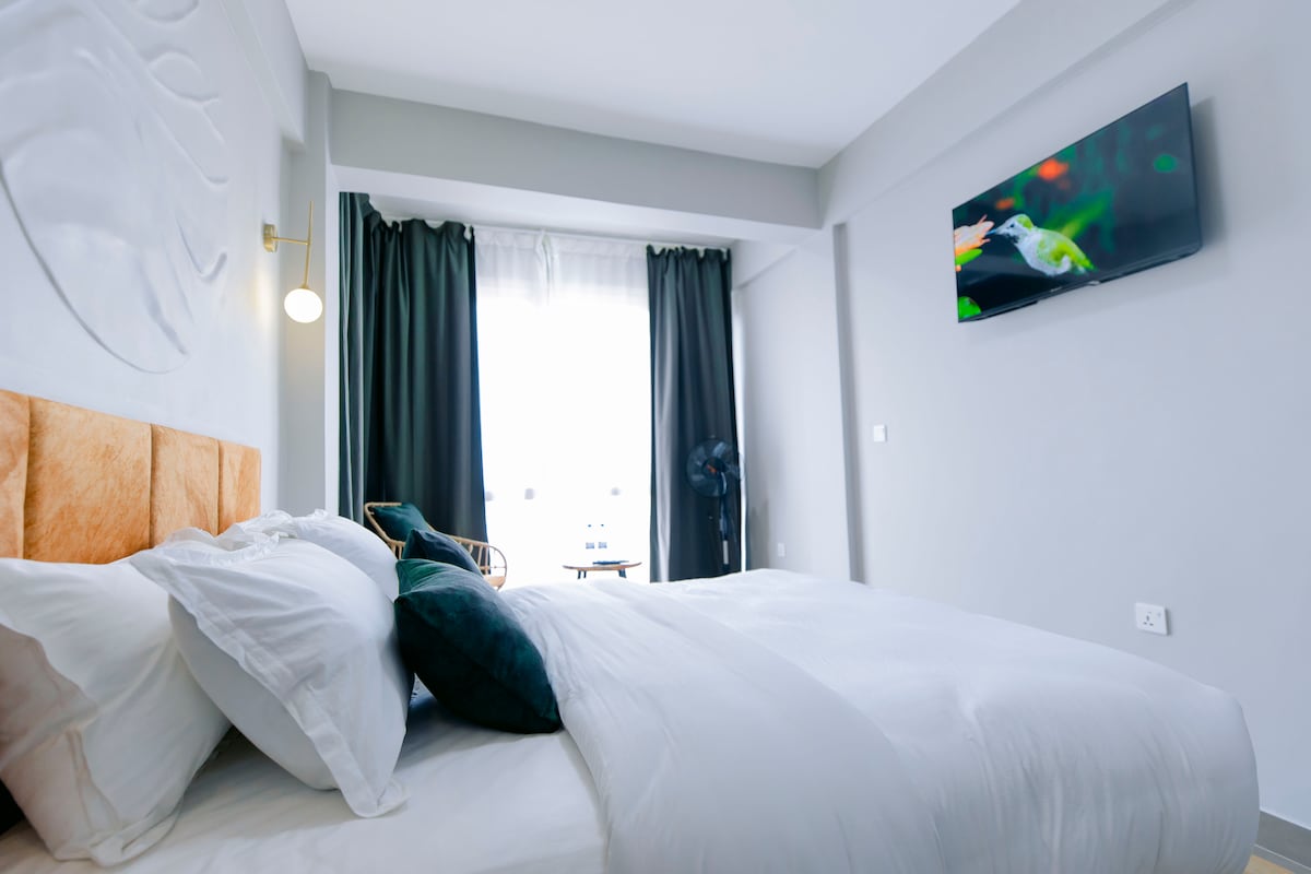 Welcome to your Kigali getaway! This stylish 1-bedroom, 1.5-bath apartment offers comfort and convenience with direct access to the pool and a fully equipped gym. Enjoy a cozy living area, stocked kitchen, and serene en-suite bedroom. Perfect for solo travelers or couples, the apartment is ideally located near restaurants, shops, and attractions. The location makes it the perfect spot to relax, unwind, and explore the city.