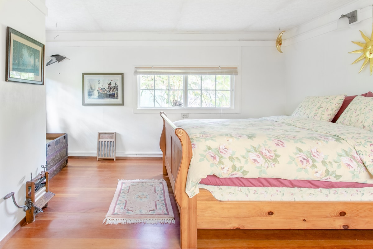Abre las ventanas para dejar que la brisa de la montaña fluya a través de una pequeña casa con mucho carácter. A 4000 pies de altura, experimenta un clima único de selva tropical de tierras altas donde hace suficiente fresco como para relajarte junto a la chimenea o disfrutar de un baño en el jacuzzi. Ubicada en los terrenos de nuestra casa de plantación de 1930, en el corazón del histórico pueblo de Volcano, la casa de campo The Maid's Quarters se encuentra a poca distancia a pie de todas las tiendas y restaurantes del pueblo, y a solo unos minutos en coche del Parque Nacional de los Volcanes de Hawái.