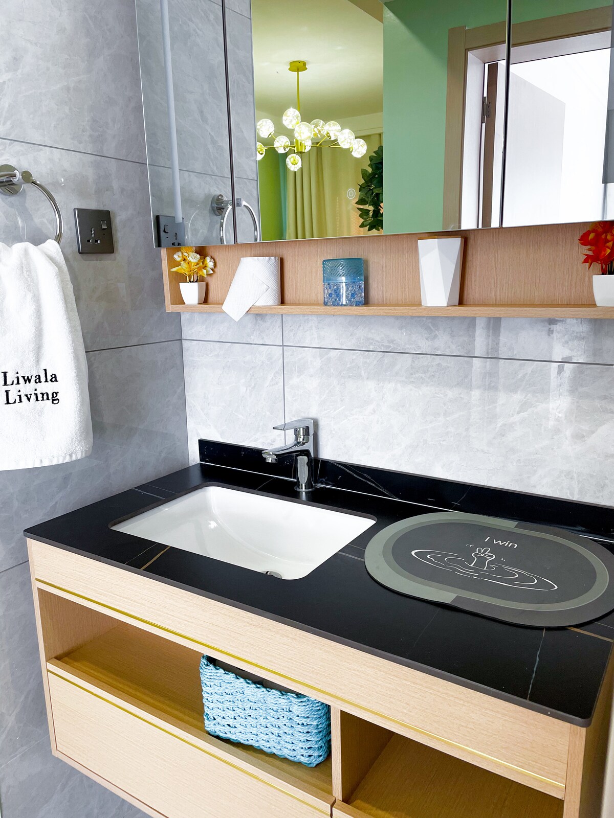 Forget your worries in this spacious and serene space. We are situated in an ideal location, just a 10-minute drive to each shopping mall and five minutes to supermarkets. Our amenities include a café, restaurant mini shop , gym, children's playground, rooftop football pitch, and a sitting area on the rooftop, all available within the apartment complex.