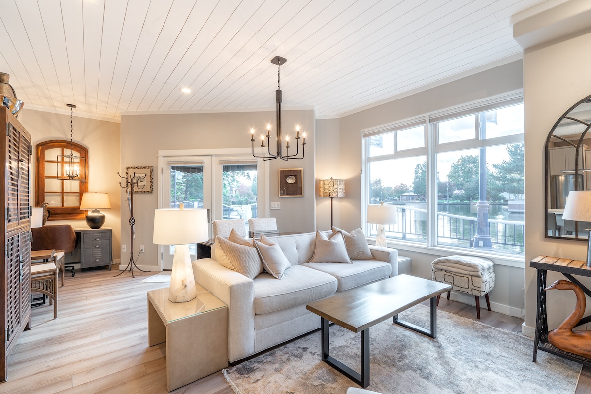Luxurious 1 Bedroom 1 Bath 750 square foot Condo . . .fully renovated from top to bottom with an all new Gourmet Kitchen; brand new upscale furnishings/artwork. This private ground floor end unit is located on a Man-Made Lake (just outside your front door!) at the Tualatin Commons in downtown Tualatin, Oregon. The dedicated parking space is on private property; and there is ample FREE 3-Hour City Parking just a few feet away.