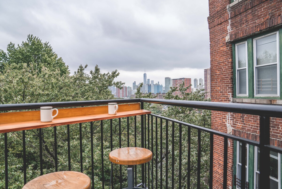 Desde esta céntrica ubicación, ¡accede fácilmente a la ciudad de Nueva York, al centro de JC, a Hoboken y al barrio! El Palisade Penthouse, recién reformado, se encuentra en el último piso de un edificio histórico en el hermoso barrio de Jersey City Heights. Con autobuses directos a Nueva York que paran en la esquina, a pie, tren ligero, PATH y opciones razonables de Uber, todo al alcance de la mano, ¡The Palisade Penthouse satisfará todas tus necesidades para una estancia divertida en el área de Nueva York!