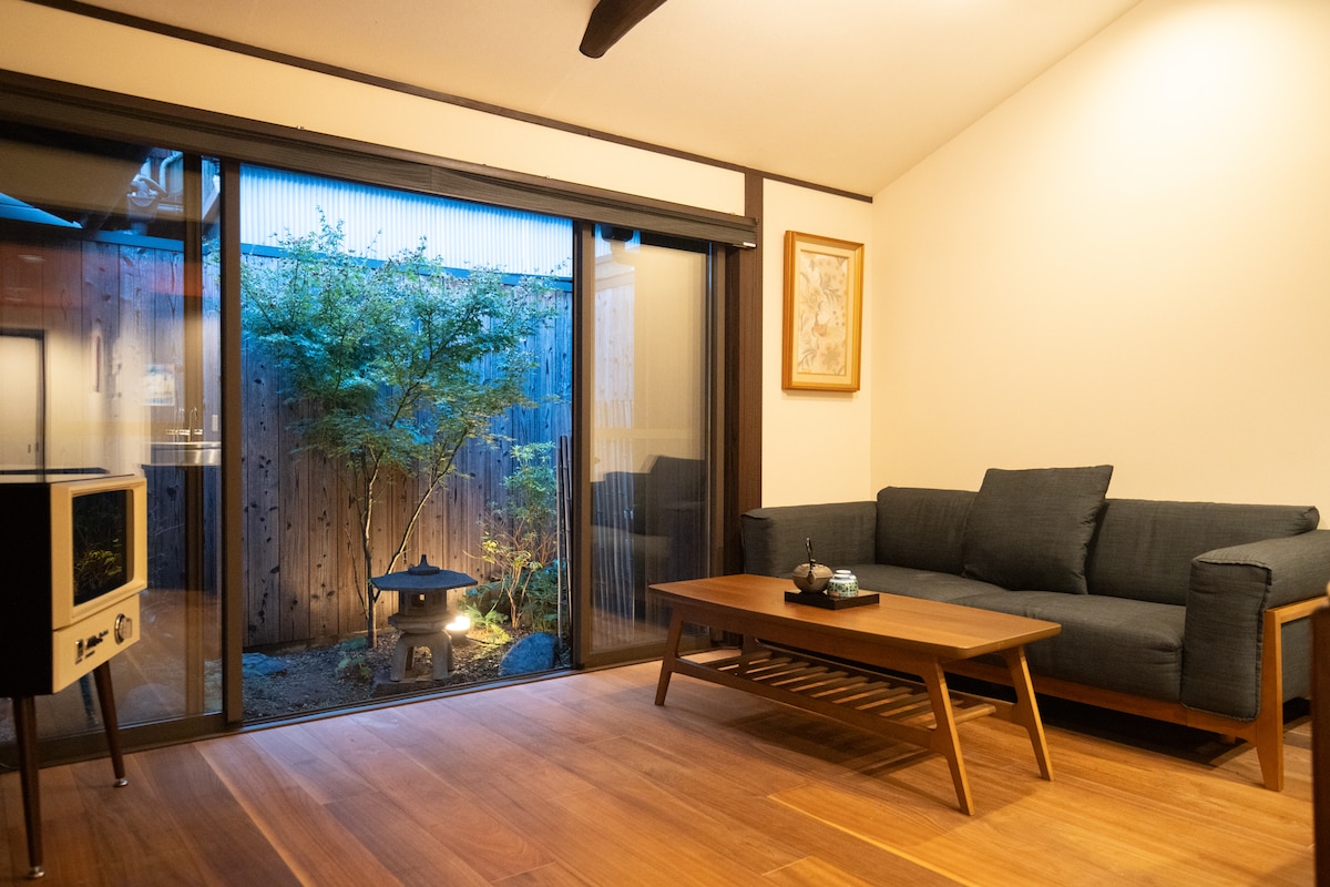 Sugiyama se encuentra en el distrito comercial de la estación de Kioto, a 10-15 minutos a pie de la estación de Kioto. Es una casa de estilo Kyomachiya independiente con un patio zen de tatami y una cocina y baño independientes. El templo de Toji está a 2 minutos a pie.