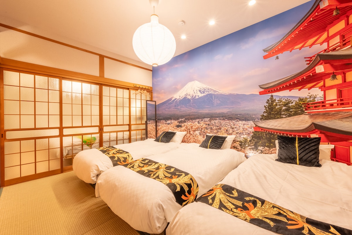 ✨We are offering 30% OFF for opening campaign. ✨ You are lucky to find this room. Don't miss this rare opportunity✨ Welcome to our spacious 2LDK (3 bedroom) room, where you’ll have the entire 75 sqm space to yourself. 100 inch screen is impressive! Please enjoy Japanese art works in this room. Located just a 4-minute walk from nearest station, which is conveniently accessible by four train lines. This room offers the perfect base for exploring not only Osaka but also Kyoto and beyond.