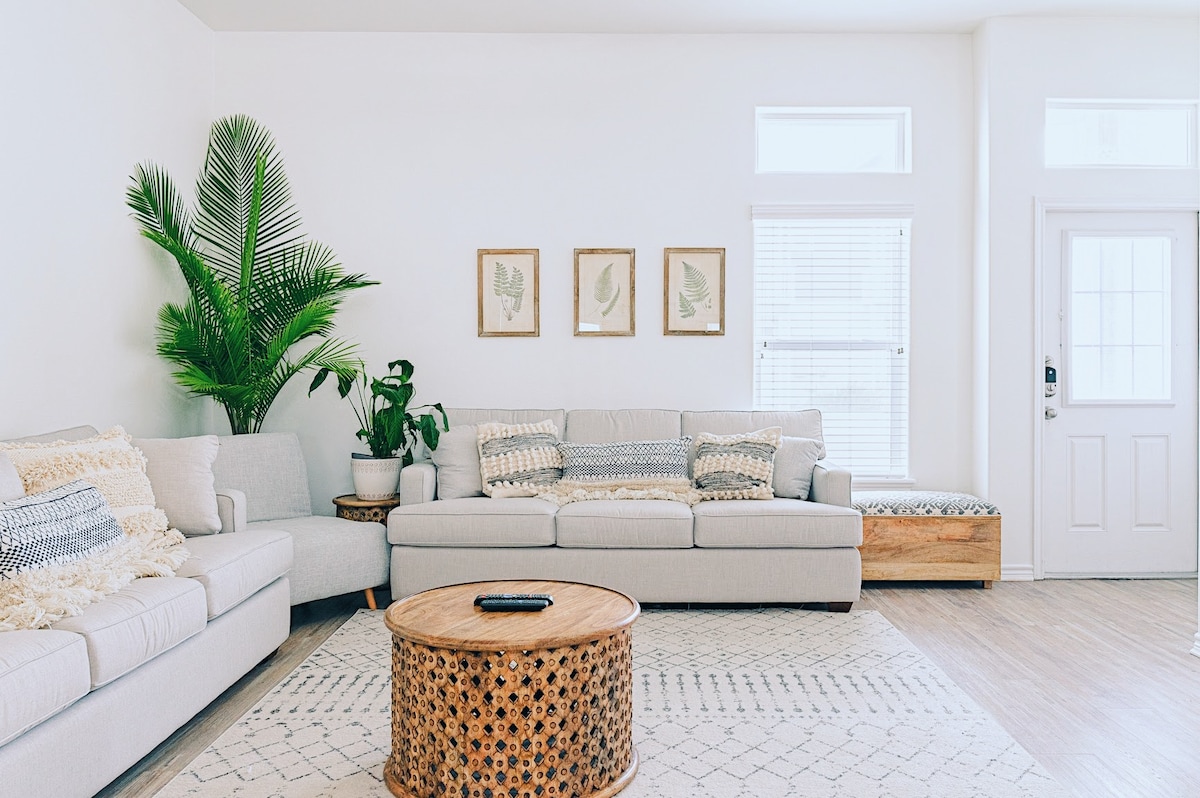 Casa relajante/acogedora y remodelada Amplio salón 2 dormitorios, 1,5 baños con 1 cama completa/queen Sensación de lujo con encimeras de cocina/mesa de comedor de mármol (4-5 personas). TV de 55 pulgadas con Netflix. Aparcamiento para 2 coches. Estufa de gas para calor constante. Gran patio trasero vallado/terraza en el patio, barbacoa disponible. El lugar perfecto para estudiantes/padres/entrenadores/negocios/deportes. A 3 manzanas a pie de la Universidad A&M de Texas - Kingsville. Experiencia: visita el cercano King Ranch, la estación aérea naval y el centro histórico. Detalles limpiados/desinfectados por estancia de huésped.