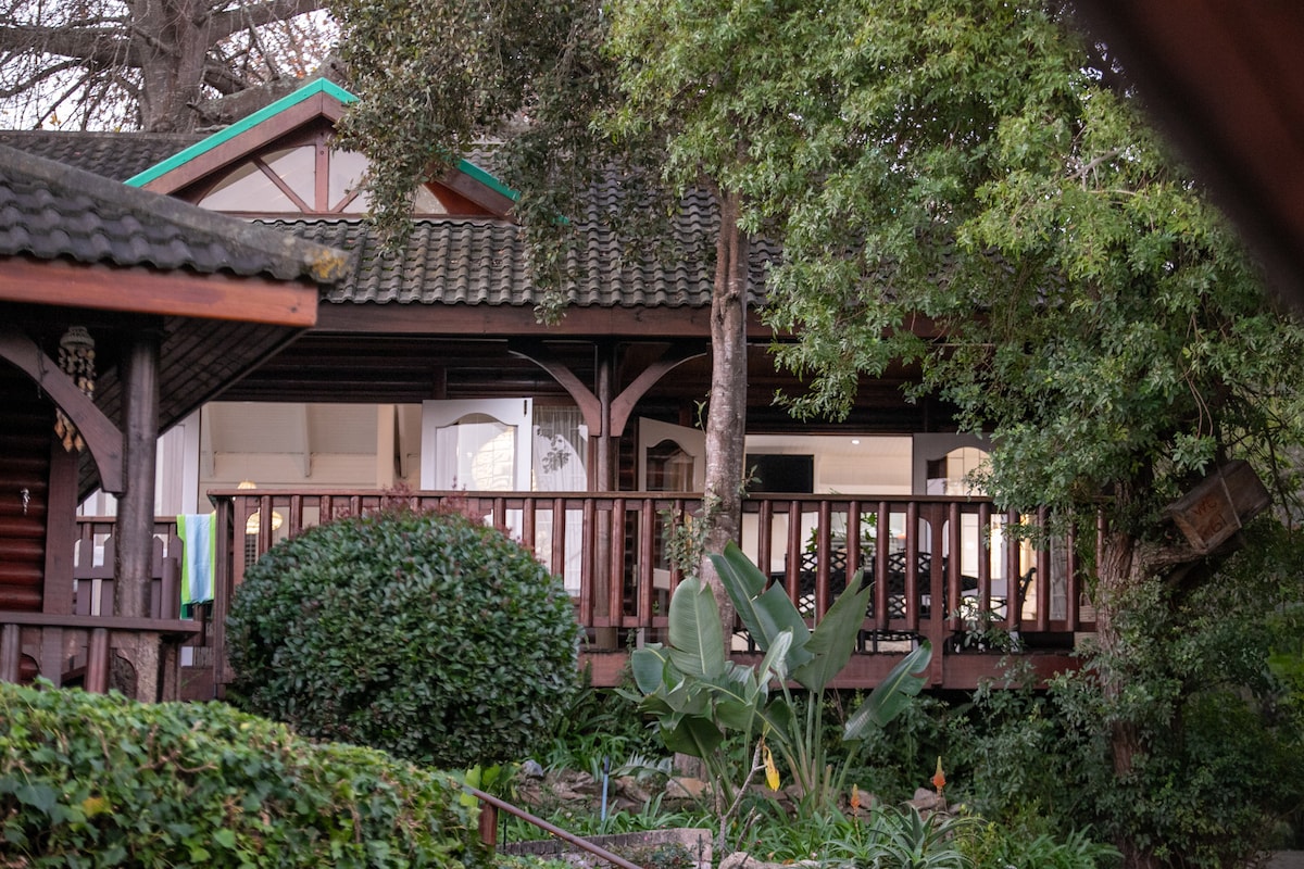 Esta cabaña única, fuera de la red, acogedora y familiar está situada en el lado norte de Knysna, a lo largo de Old Cape Road. Nuestra casa de campo familiar es perfecta para parejas/familias que buscan una escapada tranquila, rodeada de naturaleza y situada en un hermoso barranco natural indígena. La casa de campo forma parte del establecimiento The Farm, con otras 3 casas de campo y una pequeña cafetería abierta para desayunos y almuerzos tempranos, lo que también la convierte en una parada conveniente si viajas por Knysna.