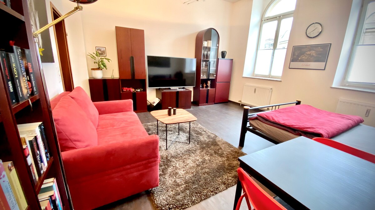 Te damos la bienvenida a tu luminoso y tranquilo apartamento de 1 habitación, ideal para tu estancia en Kulmbach. El apartamento tiene su propio balcón donde puedes relajarte y disfrutar del aire fresco. Ubicación: - A solo 15 minutos a pie del centro de la ciudad. - Una panadería y una parada de autobús están muy cerca, lo que hace que la vida cotidiana sea más fácil. **Instalaciones:** - Un cómodo sofá cama que es fácil de sacar para ofrecer espacio adicional para dormir.