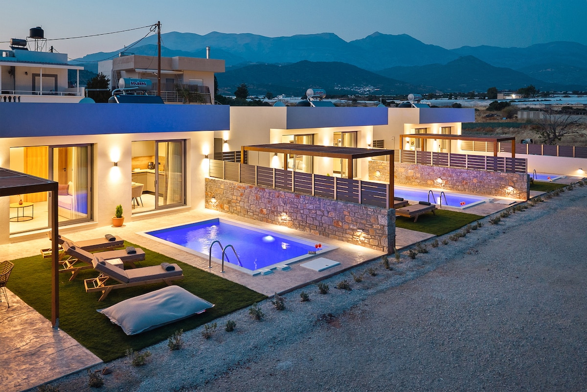 Las casas con piscina Galux ofrecen la combinación perfecta de lujo moderno y encanto cretense, enclavadas en las colinas de Agia Galini con vistas panorámicas al mar de Libia y al pintoresco pueblo de abajo. Estas dos villas privadas están cuidadosamente diseñadas para la relajación y el estilo. Cada villa cuenta con una amplia sala de estar de planta abierta en la planta baja, completa con TV inteligente, aire acondicionado y una cocina totalmente equipada para que puedas prepararte tus comidas sin esfuerzo. Un cómodo baño para huéspedes también se encuentra en la planta baja.