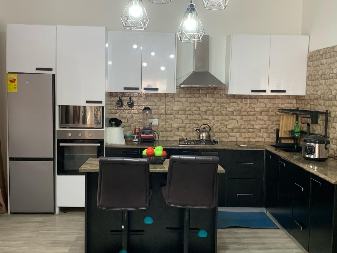 - 3 dormitorios y 2 baños (1 privado en suite, 1 principal). - Sala de estar con TV inteligente de 55 pulgadas. - Cocina totalmente equipada (incluye lavadora). - Agua caliente - Comedor. - Entrada privada. - Zona de barbacoa/parrilla. - Wifi de alta velocidad. - Aparcamiento gratuito (hasta 3-4 coches) - Cámaras de CCTV y vallas eléctricas para tu seguridad. - Servicio de limpieza gratuito cuando sea necesario. - Llegada autónoma con nuestro conserje 24/7. *GENERADOR DISPONIBLE PARA CORTES DE ENERGÍA ¡Perfecto para familias, turistas y viajeros de negocios!
