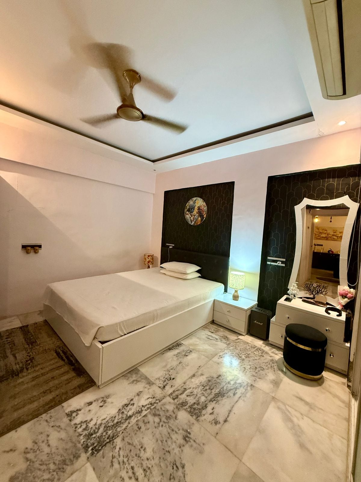 Disfruta de una estancia tranquila en esta nueva suite de invitados totalmente amueblada en el centro de Ratnagiri. Ubicada en un cruce privilegiado cerca de Maruti Mandir, la propiedad conecta 3 rutas clave: Ganpatipule, Pawas/Ganeshgule y playas locales. Incluye una cama tamaño king y queen, 4 camas individuales, 4 aires acondicionados, wifi, TV, nevera, estufa, mesa de estudio, mesa de comedor y colchón adicional. Información sobre el espacio de la habitación ⬇️ Por la zona: • Maruti Mandir: 5 minutos. • Playa Bhatye/Mandovi: 15 minutos. • Aare-Ware: 25 minutos. • Ganpatipule – 45 minutos Estacionamiento gratuito.