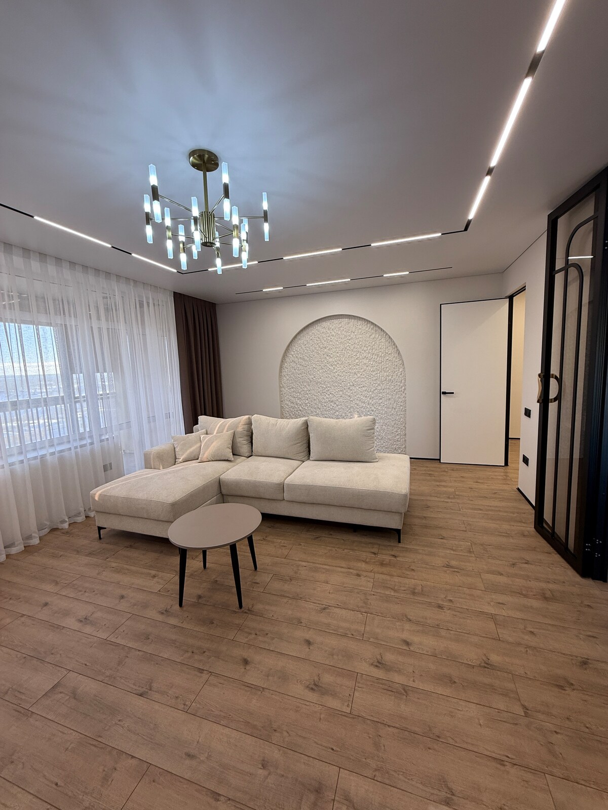 El departamento se encuentra en una parte central de la ciudad, junto a una plaza central, un centro comercial en marzo, muchos bancos y edificios administrativos. En una zona segura y tranquila, con una entrada y estacionamiento perfectamente limpios en el patio. El departamento está impecablemente limpio, con excelentes reparaciones y muebles nuevos. Hay todos los suministros de higiene para cada huésped: champú, gel de ducha, pasta de dientes, pasta de dientes, jabón, etc. Muy acogedor, siempre huele bien.