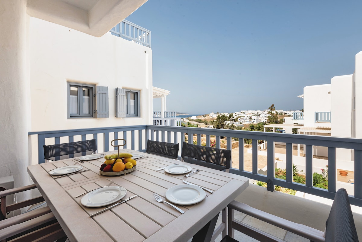 Abre las contraventanas azul marino y deja entrar la brisa refrescante, luego prepara un refrigerio en la encimera de hormigón de la cocina urbana en un refugio frente al mar. ¡Entra en la espaciosa y frondosa terraza para disfrutar de unas tranquilas bebidas al atardecer con vistas panorámicas al mar! El apartamento está situado junto a una playa de arena para nadar por la mañana y a 2 minutos a pie del centro de Naousa y su plaza principal. A pocos pasos hay tiendas, restaurantes, bares y clubes, ¡pero la zona es muy tranquila y silenciosa!