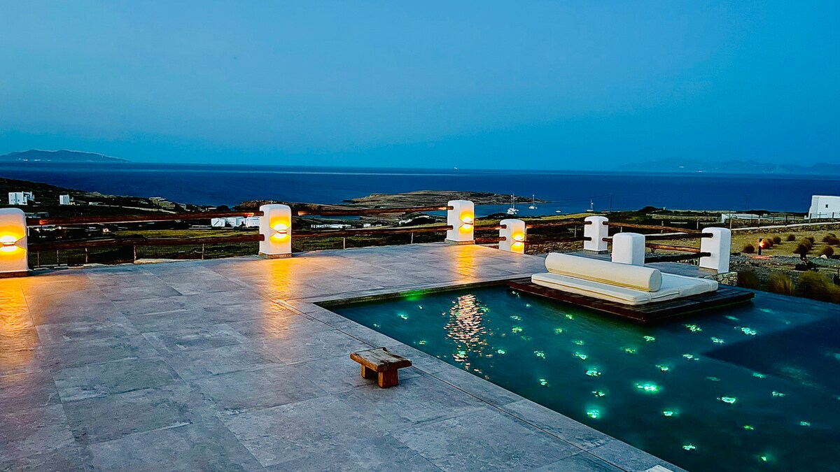 Villa Arismari se encuentra en una ladera serena, rodeada de rocas naturales, con vistas a la hermosa costa de Orkos. Tenemos una impresionante vista panorámica al mar Egeo y a nuestra isla vecina de Paros. Estamos situados entre la playa principal y las bahías más pequeñas de Orkos. Mientras disfrutas de las vistas que ofrece Villa Arismari, prepárate para hacerte unos selfies increíbles. Villa Arismari es una villa de diseño minimalista cicládico.