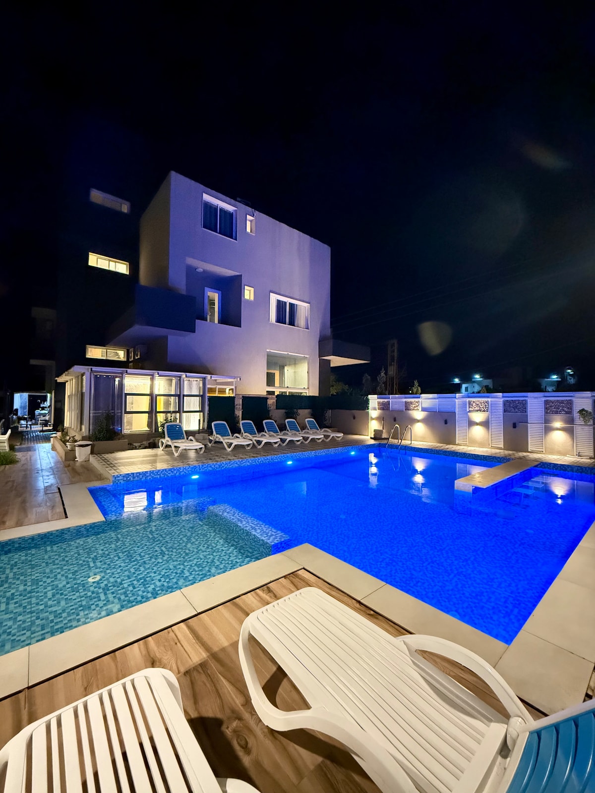 Nestled in a peaceful, tree-covered area , this cozy house offers a quiet escape with all the comfort and charm needed for a relaxing stay . While it comfortably sleeps up to four guests, the space is also ideal for hosting events or parties — up to 80 people (additional apply depending on the event size and setup). It’s equipped with 24/7 electricity, a security camera and alarm system, a private pool and an outdoor bar to a fireplace, karaoke setup, hookah & much more