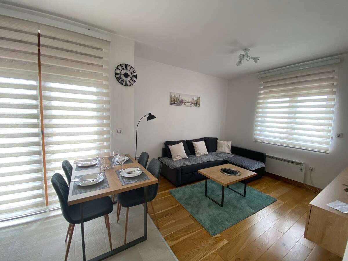 ¡Lujoso apartamento moderno en el corazón de Zlatibor! Situado en un tranquilo complejo turístico a pocos minutos a pie del centro, Gold Gondola, lago y pista de esquí. Ubicación perfecta para unas vacaciones en cualquier época del año. ◆ Estacionamiento seguro en garaje (gratis) ◆Vista de Tornik ◆ TV inteligente, aire acondicionado, lavadora + secadora, lavavajillas, cafetera ◆Bienestar y spa dentro del complejo (cargo adicional). Para el lujo sin las multitudes, la opción perfecta para la relajación. Zlatibor: ¡todo a tu alcance!
