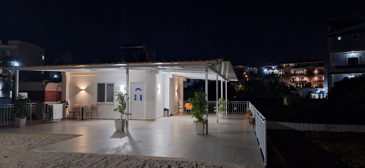 Apartamento recién reformado, 1 dormitorio, 1 baño, 1 cocina/sala de estar. En la planta baja de una pequeña casa. Adecuado para 1 a 4 huéspedes. Hay un depósito de agua y una bomba eléctrica para garantizar 24 horas de agua corriente. La casa está a 10 minutos a pie de la playa y a 2 minutos de supermercados/tiendas, cerca de la calle principal. Hay un amplio patio que también sirve como plaza de aparcamiento. Rodeado de plantas como rosas, petunias, claveles, limón, naranja, albaricoque y palmeras.