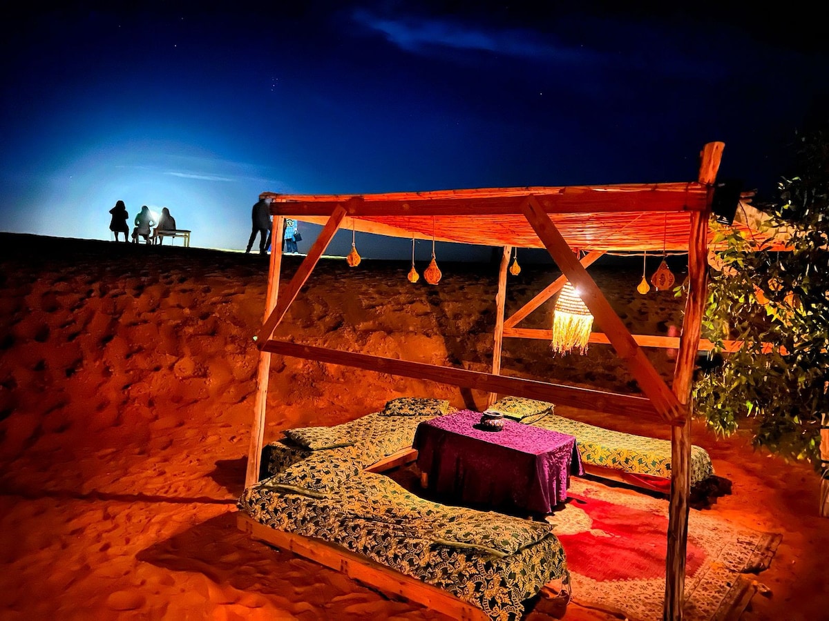 discover hhh an inviting tradicional camp i merzouga Morocco just moments from the breathtaking erg chebbi dudes. with 8 cozy rooms accomodatingup to 22 guests, the riad combines authentic moroccan design with modern comforts. relax by the pool take in panorámic views of the desert.