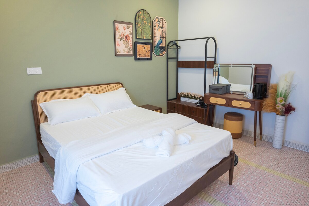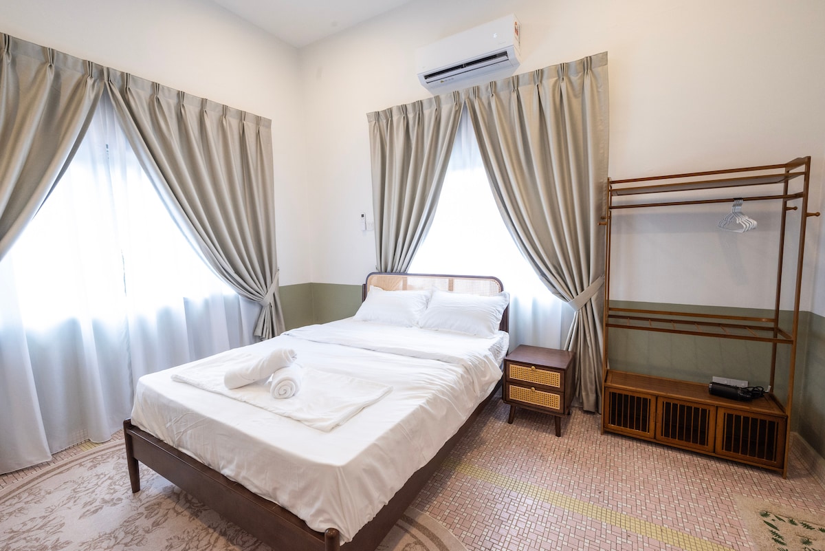 Habitación retro con cama tamaño king para 2 personas | Mansión grande en Kuantan