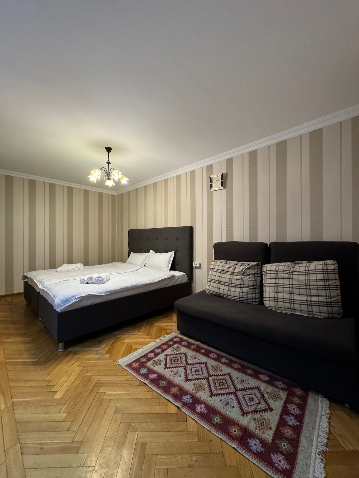 Apartamento acogedor y confortable, equipado con todo el inventario y electrodomésticos necesarios. El apartamento se desinfecta cuando cada huésped se va. Se proporcionan sábanas y toallas. Tiene una vista inusual desde el balcón y una ubicación muy buena: calle 9 de abril, n .º1. A pie necesitarás 10 minutos para aparcar, 15 minutos. A los baños y al centro de la ciudad. El apartamento cuenta con supermercados, farmacia, panadería, oficina de correos georgiana y parada de autobús.