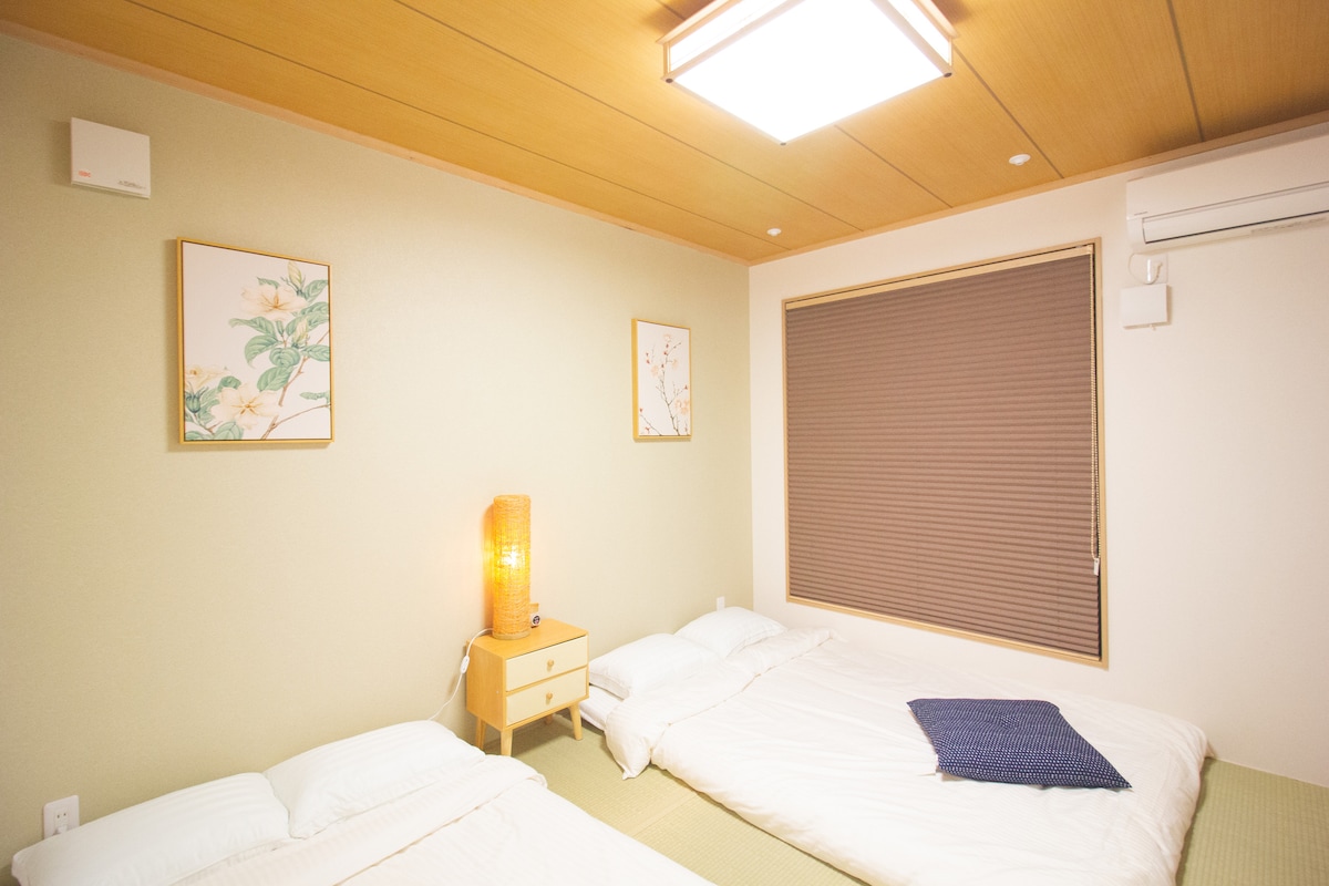 Tokinoame Taisho: 2024 October new open! It will take about 1 mins from Taisho Station to our place TO1 by walking. There're subway Nagahori-tsurumi-ryokuchi line, and JR Loop Line in Taisho Station. ★Room setting★ This room is on the first floor, and there's no elevator. If there are 4 guests or fewer: only 2 double beds will be provided. If there are 5 guests: 2 double beds and 1 single sofa bed will be provided. ※The maximum capacity is 5 guests.