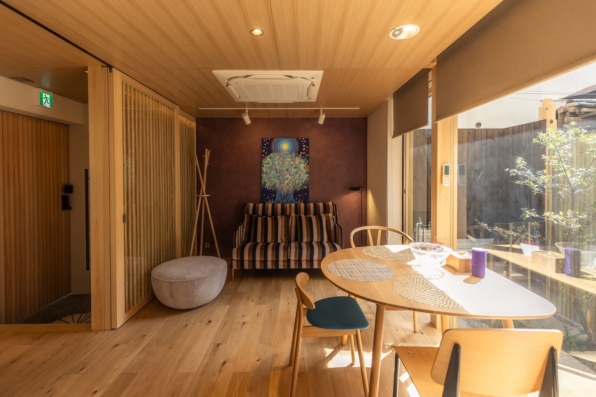 HIBI タウンハウス現代設備京町家貸切、嵐山金閣寺バス停2分 JR円町駅歩 11分近銭湯 Netflix