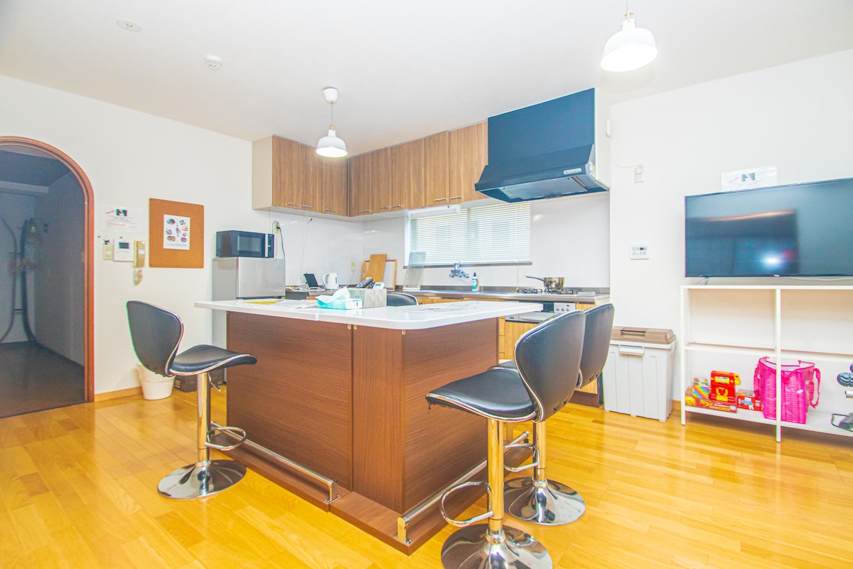 ¡Consigue un 30% de descuento para estadías más largas! ¡El centro de la ciudad (Shimojie, New Town) se encuentra a 3 minutos a pie! ¡A 4 minutos caminando de la estación de Nishima! A 6 minutos caminando del Hospital Universitario. ¡A 7 minutos a pie de SAKURAMACHI kumamoto! A 9 minutos caminando del castillo de Kumamoto. También hay autobuses con destino al aeropuerto de Kumamoto, Aso, Oita, Takachiho, Osaka, Kioto, etc., por lo que es muy conveniente ir a cualquier lugar. La habitación es un edificio con cerradura automática y puedes estar seguro en una bonita habitación de 49 m ². También hay ascensor disponible en tu habitación. 4 camas semidobles + 1 cama individual. El wifi está disponible de forma gratuita durante tu estadía. No hay estacionamiento, así que por favor usa el estacionamiento en el vecindario. Hay una habitación en el centro de la ciudad, así que puede haber ruido.