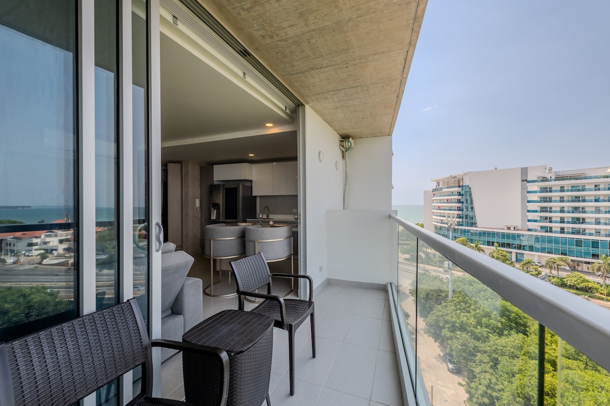 Exclusivo apartamento piso 30 Morros City con vista increíble y cautivadora al mar y centro histórico. Habitación principal con vista directa al mar y acceso al balcón. Cocina completa, lavadora y secadora 2 en 1, Smart TV 60", WiFi 500MB fibra óptica. Frente a la playa en Bocagrande con amenities de lujo: piscina, jacuzzi, turco y gimnasio. Parqueadero gratis. Ideal para parejas que buscan la experiencia más exclusiva desde el piso más alto disponible en toda Cartagena.
