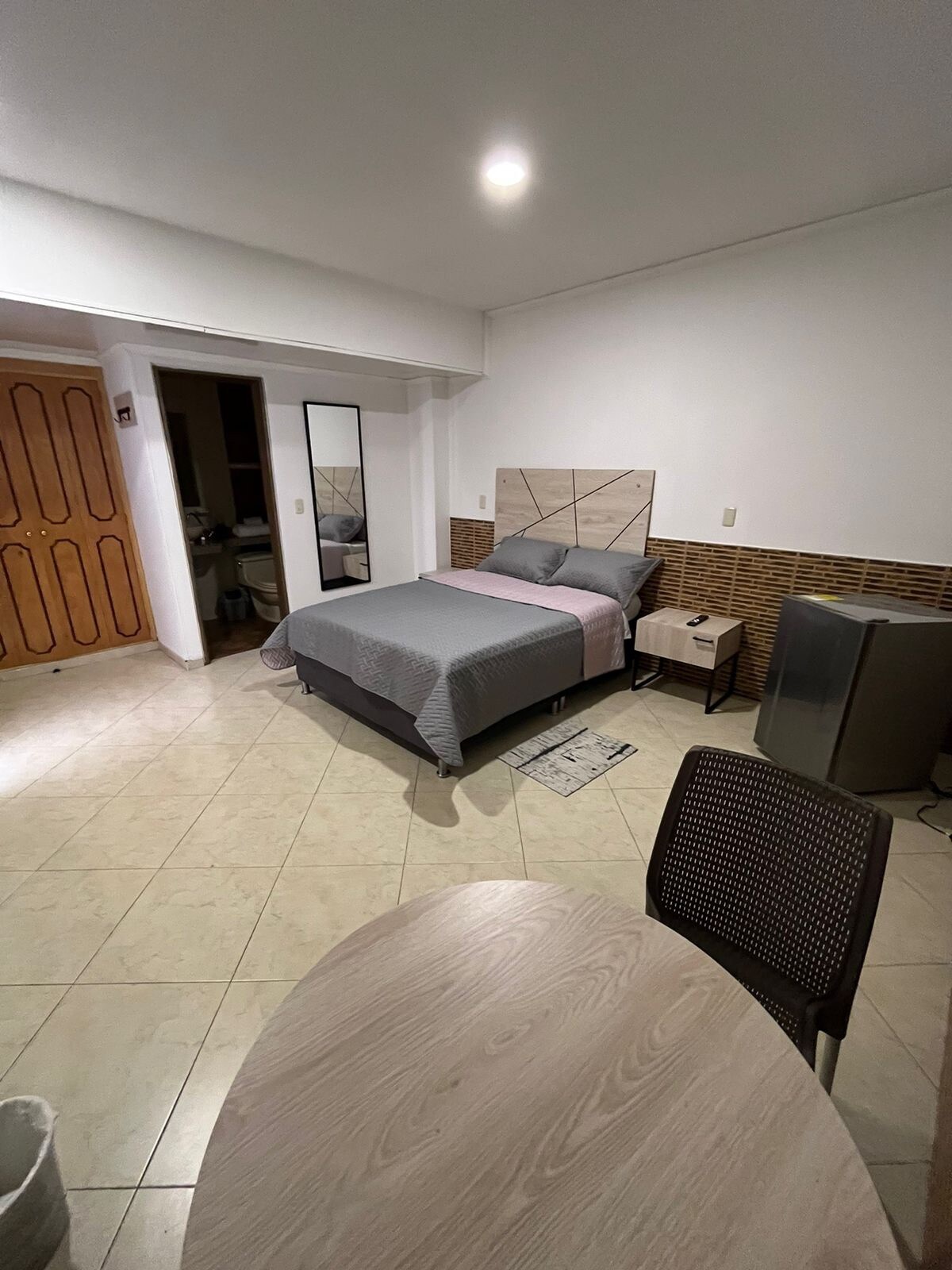 Este acogedor apartaestudio es de uso exclusivo, independiente y privado consta de una habitación amplia, con una cama doble, TV, clóset y mesa de escritorio, baño con agua caliente y una cocineta con nevera la cual tiene lo necesario para cocinar como ollas, loza, cubiertos y otros adicionales. El apartaestudio se encuentra ubicado en la parte de atras de la casa principal, por lo que la entrada es compartida entre ambos. El apartaestudio tiene una buena iluminación, es muy limpio y acogedor