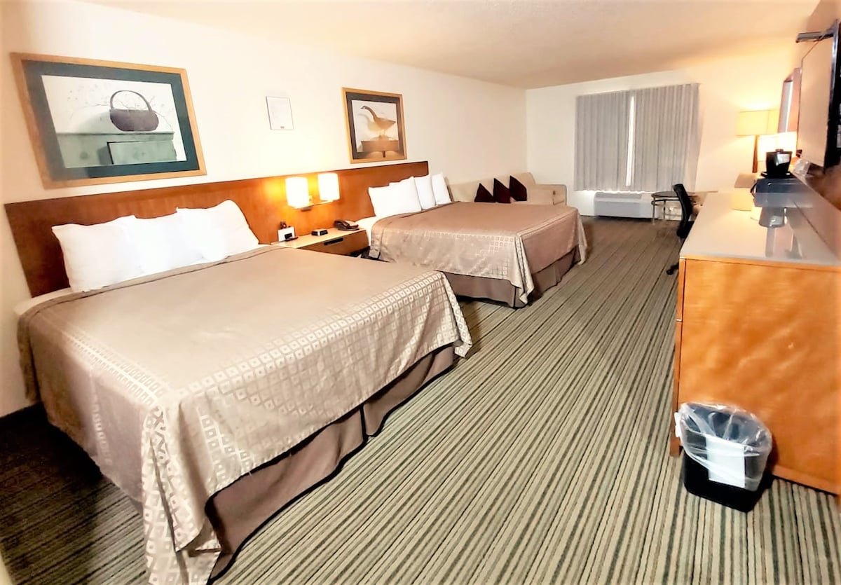 Habitación con 2 camas completas y baño con vistas al lago Onalaska