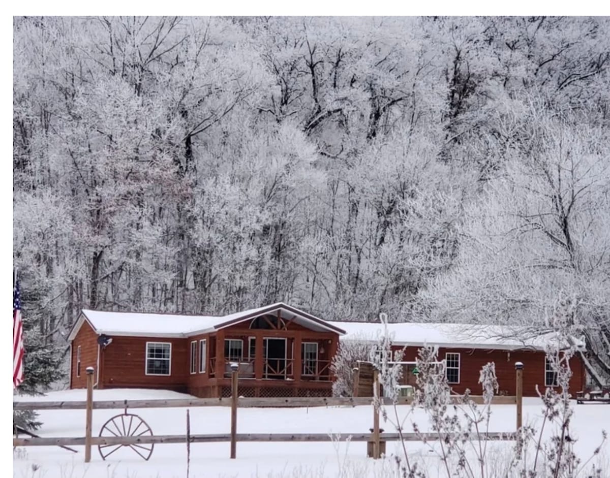 Relájate y sumérgete en la naturaleza en esta acogedora cabaña con vistas a Timber Coulee Creek. Las grandes ventanas de la sala de estar y una amplia terraza te ofrecen una vista panorámica del río ondulante y muchos tipos de vida silvestre. Los ciervos deambulan por la propiedad; las águilas se elevan y vigilan todo. Pavos, ardillas, mapaches y una miríada de aves se dedican a sus asuntos en este entorno sereno. La pesca de truchas es un excelente pasatiempo para aquellos que quieren lanzar una línea. Descansa en el nido de la naturaleza.