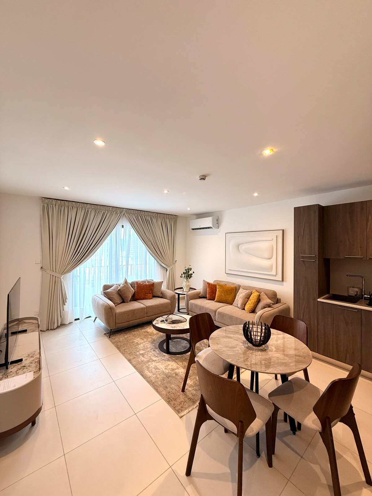 Tu extraordinaria experiencia en Accra comienza aquí. Reserva ahora y descubre por qué los huéspedes dicen que "el hogar lejos de casa solo mejora". Acceso a la piscina en la azotea y al gimnasio. Este elegante alojamiento en Airport Residential ofrece comodidad a nivel de hotel. Disfruta de una cama tamaño queen, un vibrante sofá amarillo, televisor inteligente, wifi rápido, aire acondicionado fresco, cocina pequeña y un balcón tranquilo. Camina con seguridad a Airport City, restaurantes, centros comerciales, cafés y Roman Ridge. A 5-10 minutos en auto del aeropuerto. Perfecto para viajeros de negocios, parejas, huéspedes solos y escapadas de fin de semana.
