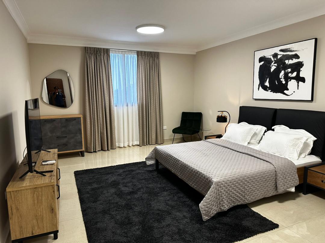 Experience the comfort of this luxurious one-bedroom suite, offering exceptional value just a 10-minute drive from the airport, Osu, Accra Mall, and Cantonments. Enjoy nearby restaurants and shopping within walking distance. Suite features a rooftop terrace with airport views, an outdoor dining area on the ground and rooftop levels, a swimming pool, reliable Wi-Fi, 24h power supply and security. Centrally located in East Airport, at the heart of Accra, it’s thoughtfully designed for your comfort