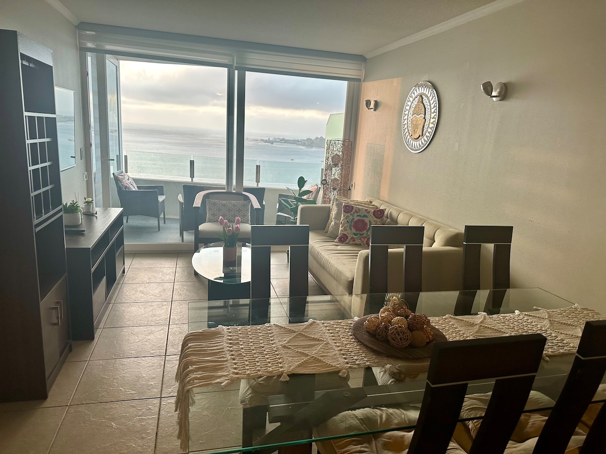 Frente al mar, primera línea de la playa, al lado del casino Enjoy. Vista directa al mar. Edificio con todas las comodidades, piscinas, gimnasio, lavandería, portería 24 horas, estacionamiento cubierto. A pocos pasos de los mejores restaurantes, minimarkets, ciclovía y a 20 minutos del aeropuerto de Coquimbo. Departamento completamente equipado, con 3 habitaciones, para 6 personas. Cuenta con tv por cable, internet, cocina equipada, jacuzzi en alcoba principal, ropa de cama y toallas.
