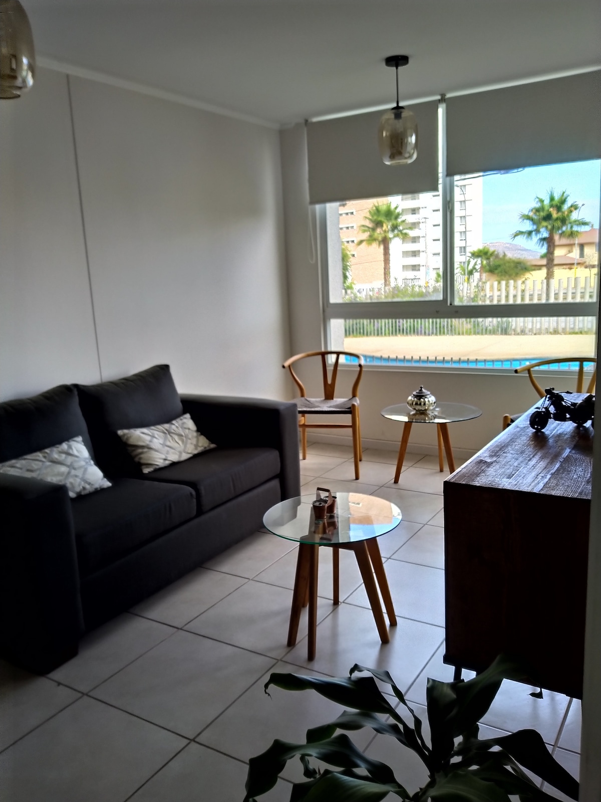Nos llamamos ¡The Sunsets!, Y te ofrecemos este departamento llamado "Relax Indoors La Herradura". Fue condicionado por nosotros para que te desconectes de las banalidades diarias, aislado del bullicio cotidiano, con un espacio elegante y perfectamente ubicado para disfrutar de un amanecer con el sonido de las olas, un sunset pintado de colores que solo la Región Estrella puede ofrecer o una meditación en la misma playa, ya que el condominio cuenta con acceso directo a la playa, ¡Tú decides!