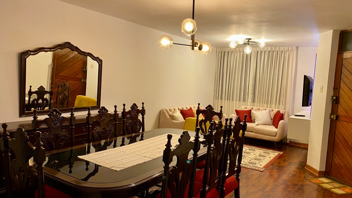 Descubre un refugio Ideal para tus perfectas vacaciones, junto a tu familia y amigos. Haz de tu estancia una experiencia inolvidable con estilo y comodidades inigualables en una atmósfera acogedora. Ubicado en el centro histórico de Cajamarca a 7 cdras de Plaza de Armas, junto a mercados y centros comerciales, con amplio acceso vehicular. Estamos en el 1er Piso del edificio, se brinda estacionamiento gratis con portón automático y dispone de cámaras de seguridad exterior.