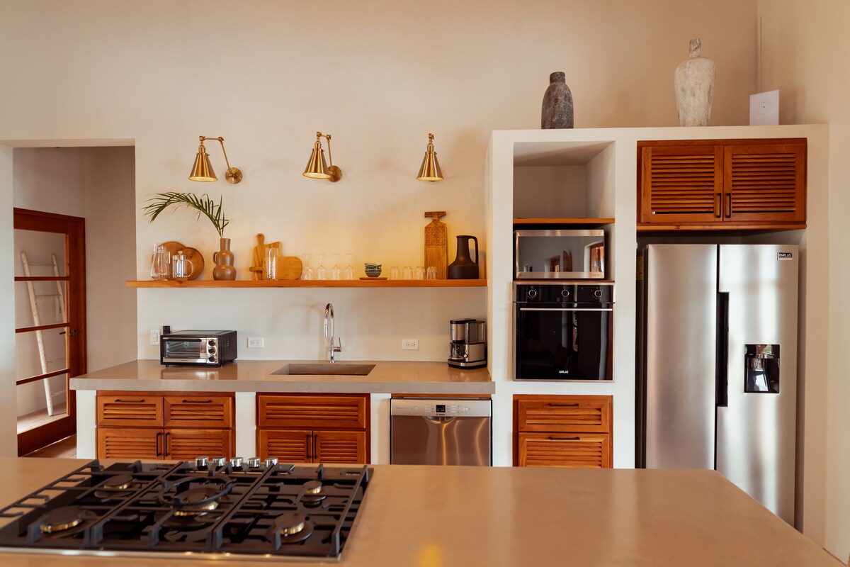 ¡Te damos la bienvenida al paraíso ! Hermosa casa con piscina privada y un gran patio, increíble para entretener a familiares/ amigos 1 dormitorio principal con baño completo con jacuzzi, puertas francesas a la terraza. 1 cama tamaño queen con baño completo -1 litera doble/individual con baño completo Comedor abierto, cocina y sala de estar Acceso completo al Andromeda Beach Club Restaurante y bar completos: ¡siempre hay algo que hacer! ¡Piscina infinita masiva con escalones al Océano Pacífico! La playa es muy hermosa y privada y hay millas para explorar