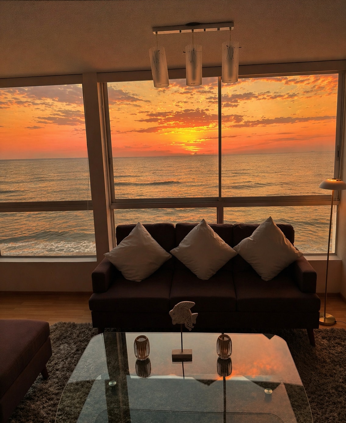 Piso 19 con vista frontal al mar y atardeceres de lujo. 🌊 A solo 15 min del aeropuerto, ideal para viajeros y nómadas digitales. ✈️ Lo mejor: ✅ Fibra óptica 300 Mbps (Home Office real). ✅ Smart TV 55" y 50" en sala y cuarto principal. ✅ Ingreso autónomo con Lockbox. ✅ 2 Hab: Cama Queen y 2 plazas. Cocina equipada con café de cortesía. A pasos de la alameda y las mejores cevicherías. Nota: Requerimos DNI previo para acceso por seguridad del edificio.