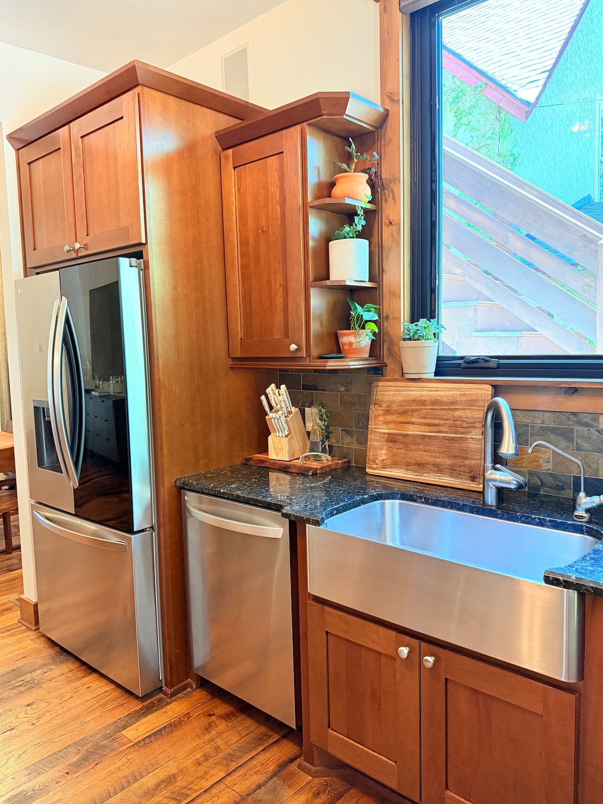 Con lo último en privacidad, la cabaña de madera tallada a mano tiene vistas al Lago Azul lleno de truchas y tiene espectaculares vistas a la montaña desde la cubierta envolvente o la sala de estar con chimenea de piedra. La cabaña cuenta con una cocina totalmente equipada, tres dormitorios y tres baños. El dormitorio principal tiene una cama tamaño king y una chimenea, el acogedor dormitorio del piso medio tiene una cama tamaño queen; y el dormitorio de la planta baja tiene una entrada privada con dos camas tamaño queen. Cómodo para dos a ocho huéspedes.