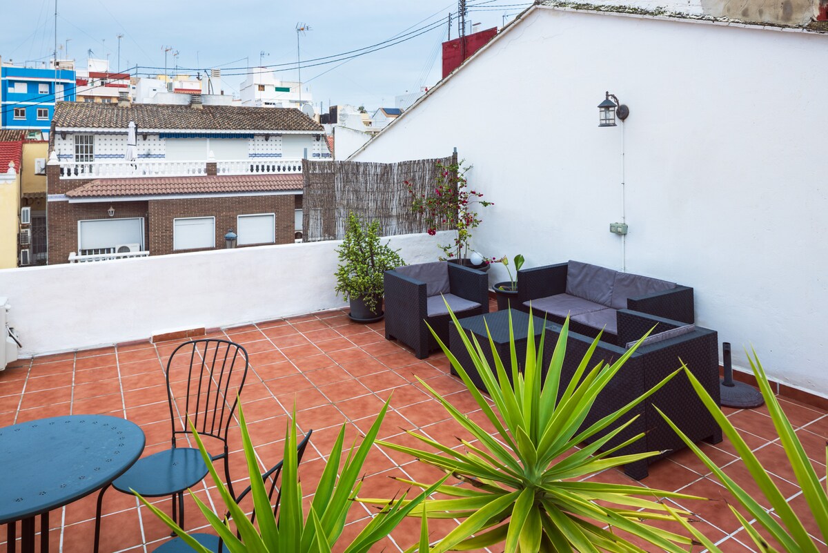 Loft con terraza en casa típica del Cabañal