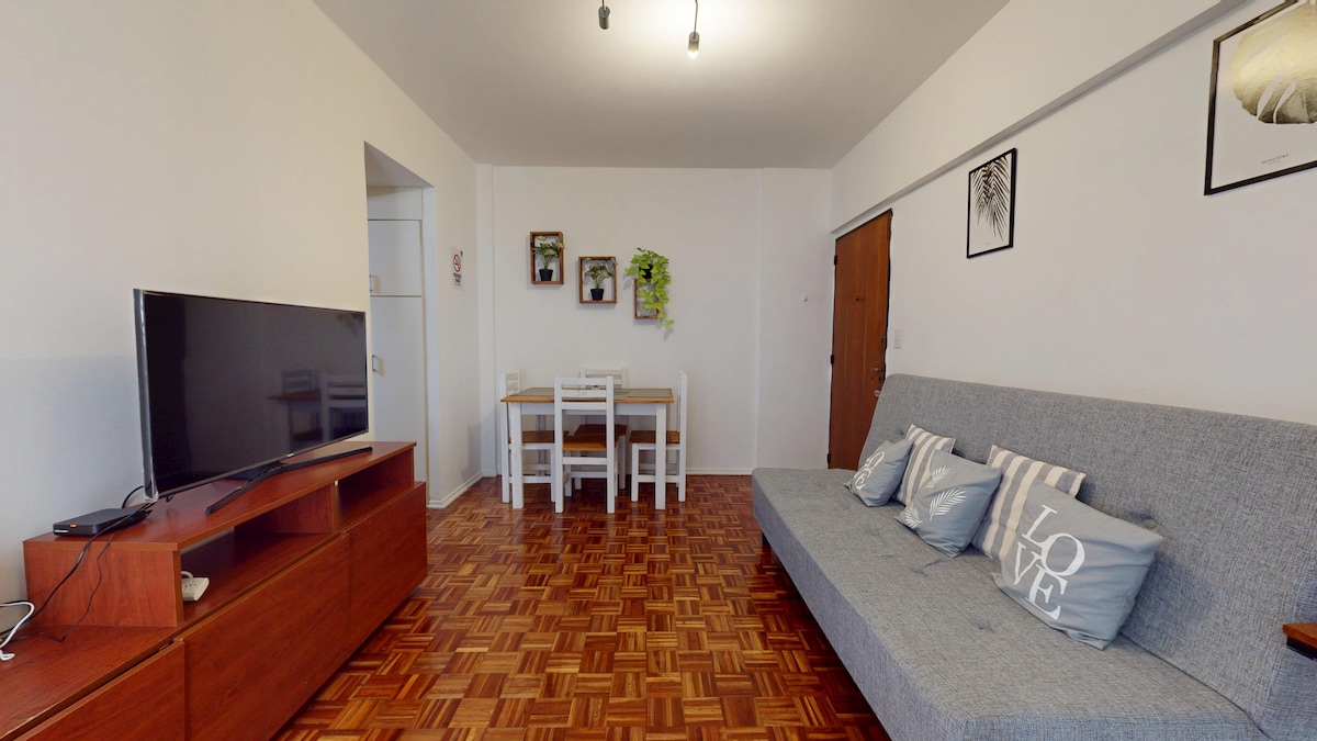 Departamento muy luminoso y silencioso, ubicado en un edificio moderno a 3 cuadras de Plaza Italia, de fácil acceso al transporte público. Totalmente equipado para tres personas. Check-in fuera de horario laboral (a partir de las 8pm) se puede coordinar abonando un fee extra en el check-in, consulte antes de reservar.