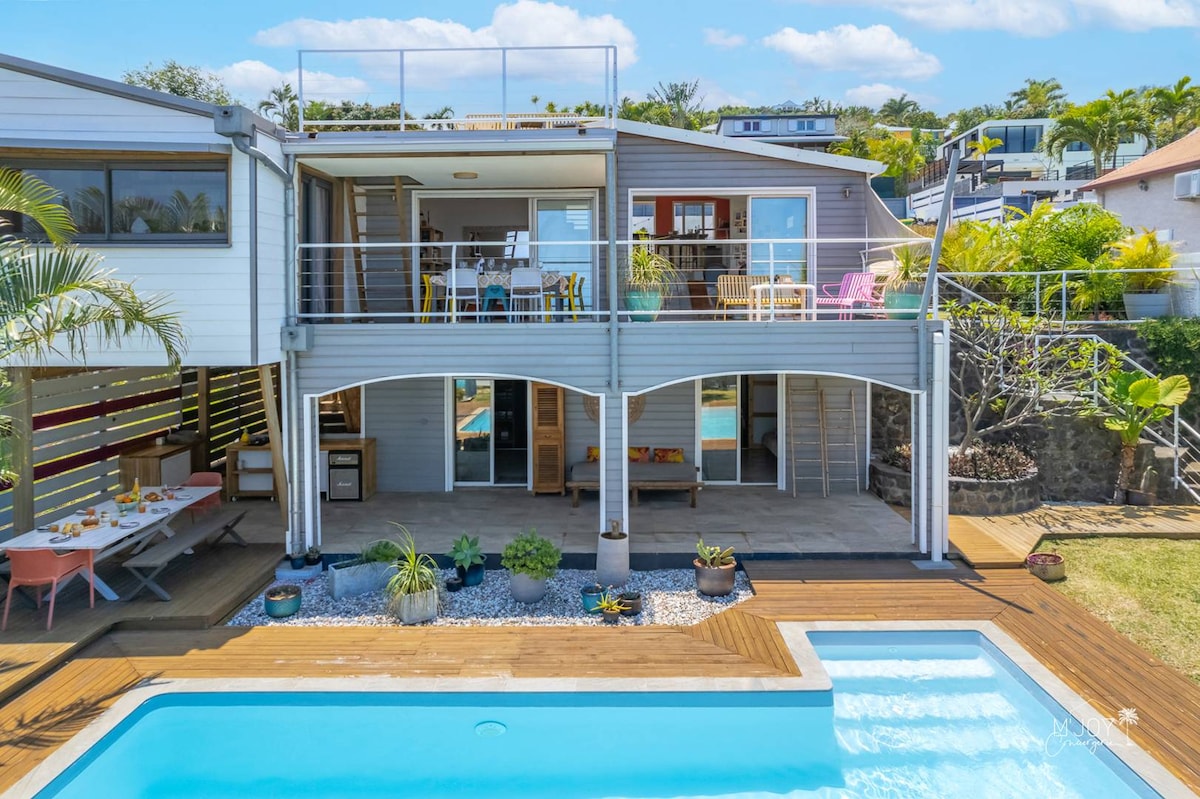 Disfrute de una estancia excepcional con vistas al mar 🌈☀️ Este luminoso apartamento, situado en el piso de arriba de una casa con entrada independiente, ofrece 2 dormitorios con aire acondicionado, una sala de estar con TV y WiFi de fibra, un baño moderno y una cocina equipada. Disfrute de una terraza frente al mar.🌊 Ideal para un alquiler de corta o media duración, a menos de 10 minutos del Cap Sacré Coeur y de la Route des Tamarins. Como bono, un gimnasio privado 🏋🏻♀️ Confort y relajación garantizados. Reserve rápido 😁