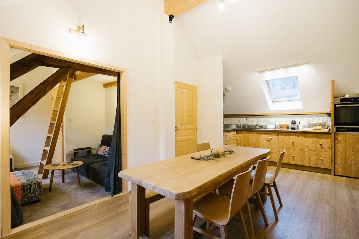 2025: ¡NUEVA DECORACIÓN! En el centro del pueblo, cerca de las pistas y las rutas de senderismo, bajo los tejados de esta casa de pueblo, descubrirá un apartamento de 2 plantas con todas las comodidades y la decoración típica de las casas de campo, con madera, vigas antiguas, piedras, chimenea de piedra y leña. La entrada de la casa se encuentra en la calle principal del pueblo. El apartamento está situado en el primer piso. Ambiente de pueblo, capilla e iglesia clasificadas en las cercanías.