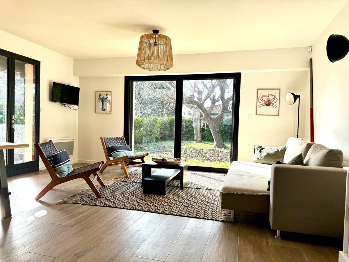 Ubicado bajo los robles y en una zona tranquila, te invitamos a descubrir nuestro encantador estudio nuevo de 40 m2, idealmente situado entre Arcachon y Cap Ferret. Este estudio, a la vez espacioso y cómodo, está equipado con una cocina moderna, aire acondicionado reversible y un espacio de trabajo equipado con conexión de fibra. Una plaza de aparcamiento está a su disposición con la posibilidad de recargar su vehículo eléctrico.