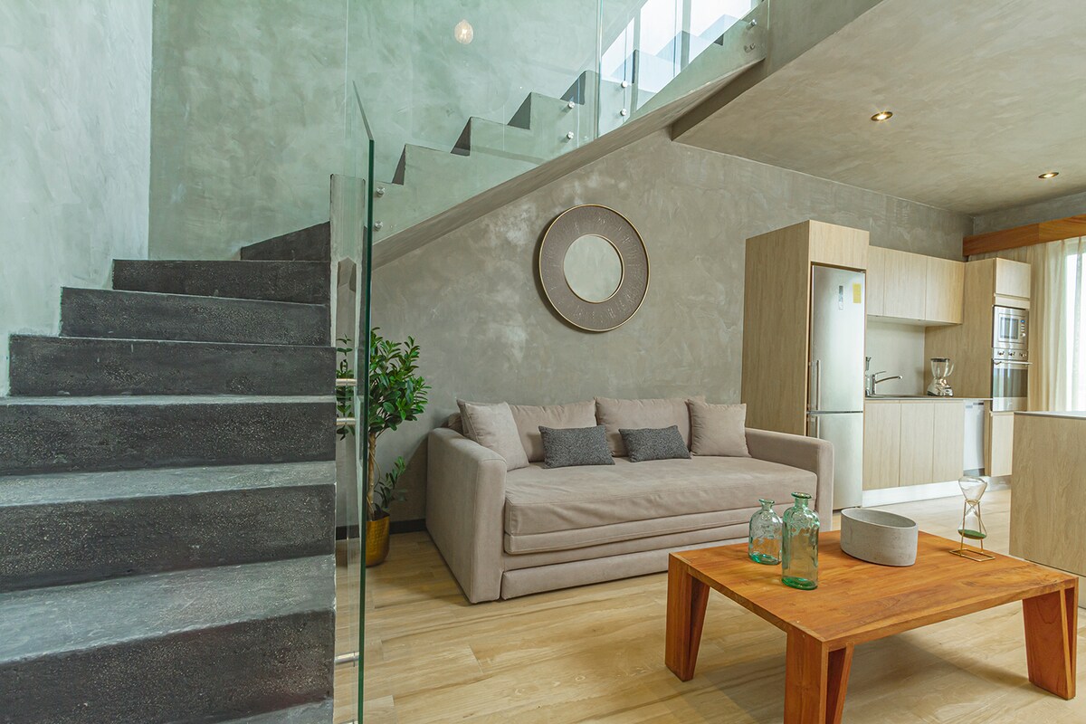 Estudio tipo loft, con un diseño contemporáneo, perfecto para viaje solo o en parejas. Ubicado en el exclusivo fraccionamiento Aldea Zamá Premium a 8 minutos de Chedraui, 10 minutos del centro de Tulum y de la playa en auto. Cuenta con diferentes amenidades para el disfrute de los huéspedes: un rooftof donde se aprecian grandes atardeceres, área de Yoga y Gimnasio, área de cine y Temazcal para el entretenimiento y relajación; para viajes de trabajo, se tiene área de Co-working y sala de juntas.