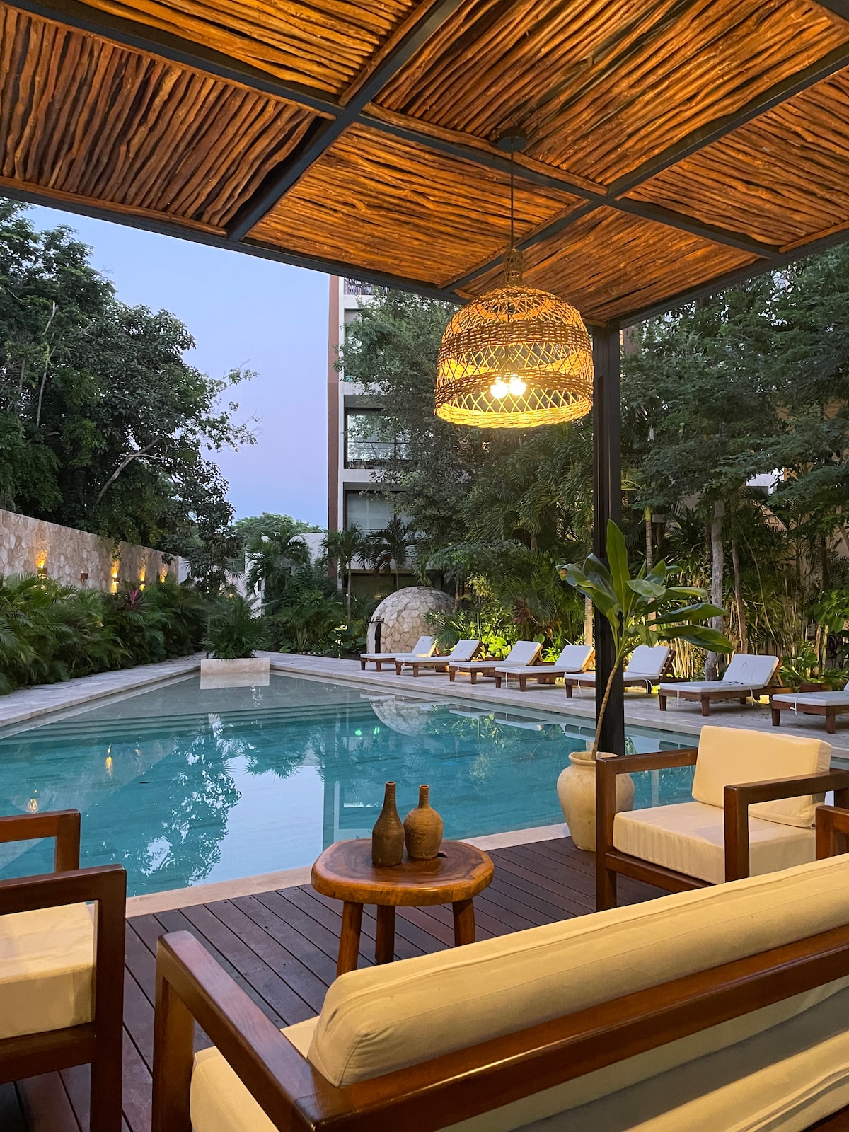 Rodeado de palmeras, este alojamiento único ofrece la combinación perfecta para vivir la esencia de Tulum.. Ubicado a solo 7 minutos de la playa, La Veleta y a 10 minutos del centro. Disfruta de una de las piscinas más grandes de Tulum, transporte gratuito a la playa y un gimnasio completamente equipado. El complejo también cuenta con un spa, restaurantes en el lugar y una tienda de conveniencia. Tenemos todo lo que necesitas para una estancia relajante y sin preocupaciones.