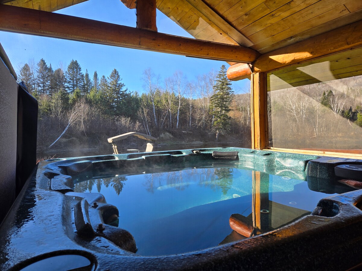 Le Chaleureux es un lujoso chalet de madera redonda situado a orillas del río Batiscan, en el corazón de un entorno natural reconocido por sus paisajes y sus actividades al aire libre. Íntimo y rodeado de un gran terreno privado, es perfecto para una escapada romántica o familiar. Spa privado abierto todo el año. Los senderos federados de bicicleta de montaña y moto de nieve son accesibles directamente desde el chalet, con un mapa detallado disponible en las fotos para facilitar sus actividades.